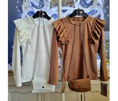 Krásne trendové tričko s volánmi a odopínateľnou retiazkou.