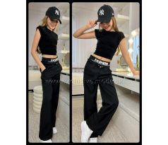Trendový dievčenský komplet vrúbkového materiálu,ktorý pozostáva z nohavíc a topu..