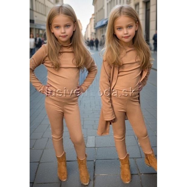 3 dielna súprava top s dlhým rukávom + legíny + kardigán v hnedej farbe