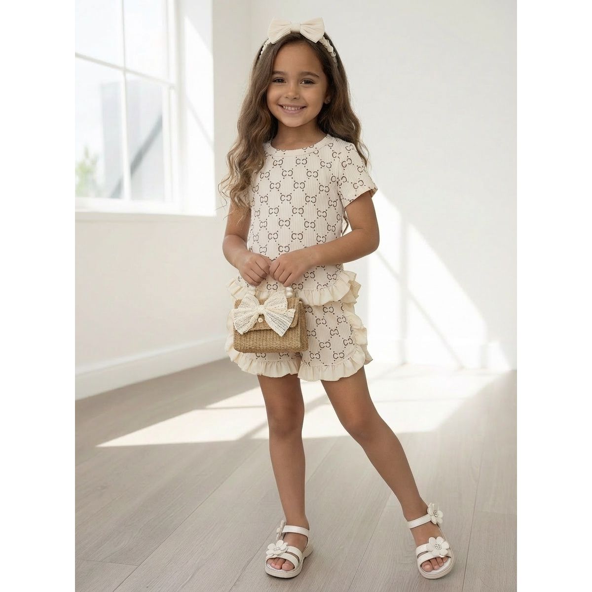 Novinka ,ktorá pozostáva z trička,šortiek a čelenky.