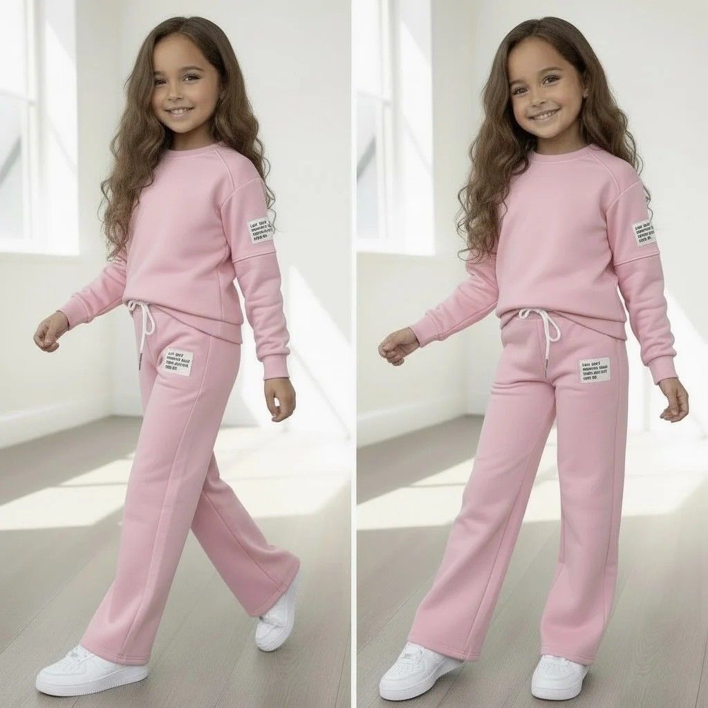 Vrchná časť tvorí mikina s dlhým rukávom s mierne voľným strihom, okrúhlym výstrihom a zakončenými manžetami. Spodná časť mikiny je rovná a čistá, s malým detailom na rukáve, ktorý dodáva jemný štýlový nádych.