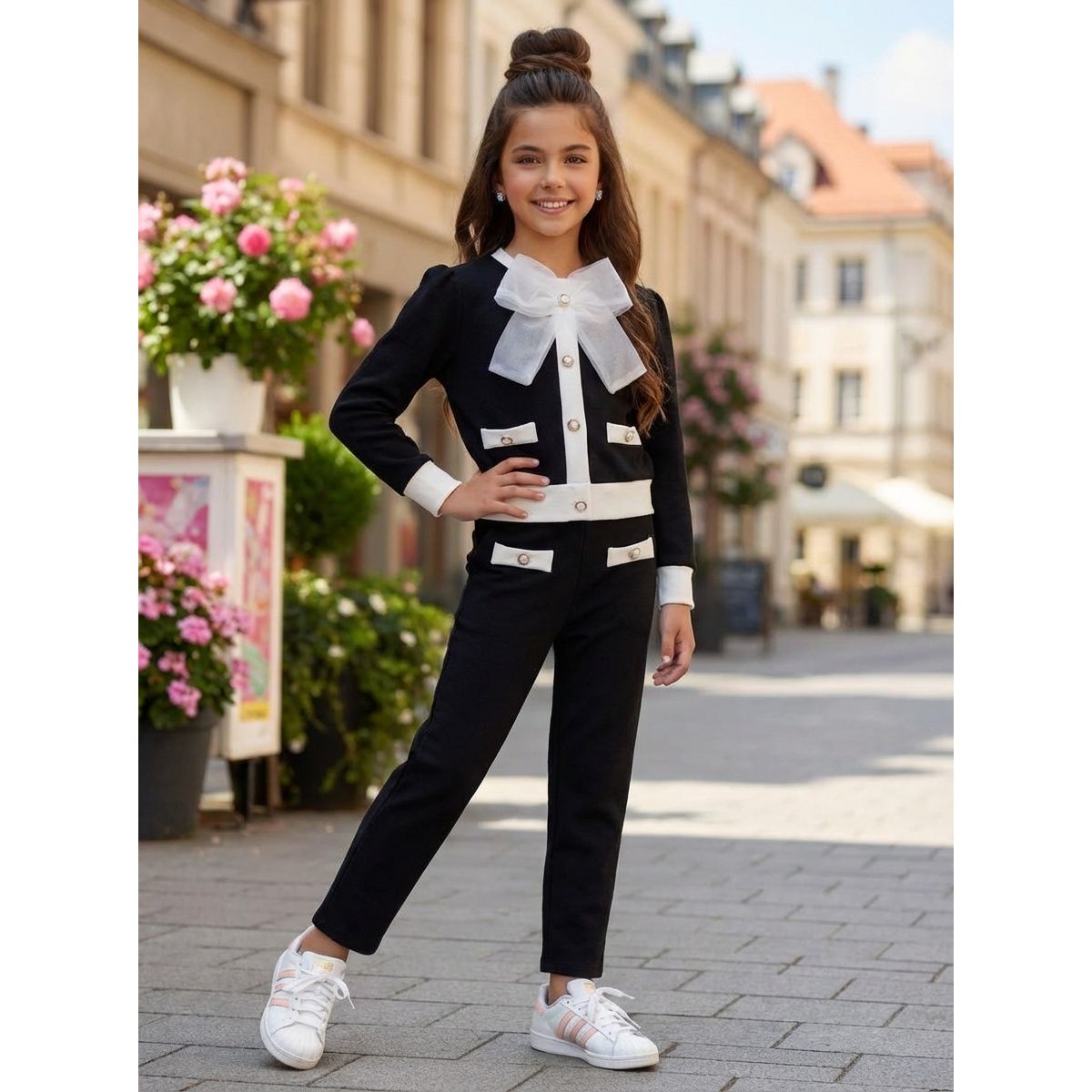 Nádherná Novinka, ktorá pozostáva z dvojdielneho kompletu blúzky a nohavíc.Veľkosti sedia klasickému číslovaniu.