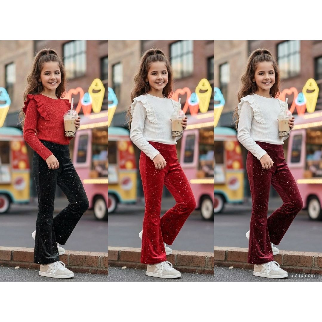 Krásne nohavice mierne do zvonu s trblietkami v 3 trendových farbách.