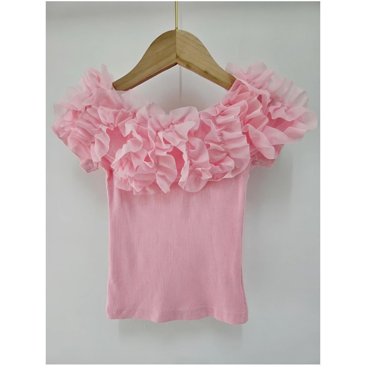 Tričko s riasením baby pink
