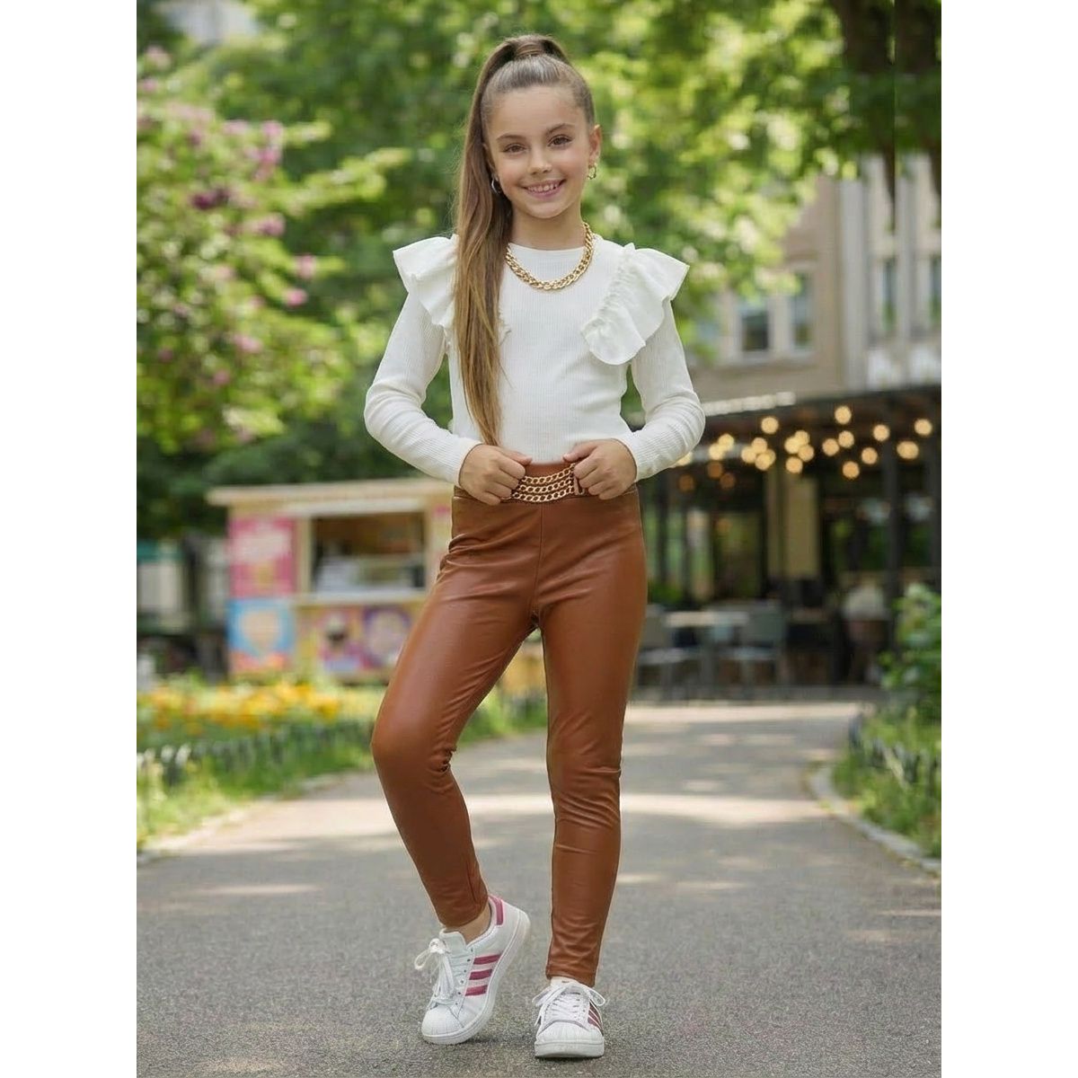 Krásne trendové tričko s volánmi a odopínateľnou retiazkou.