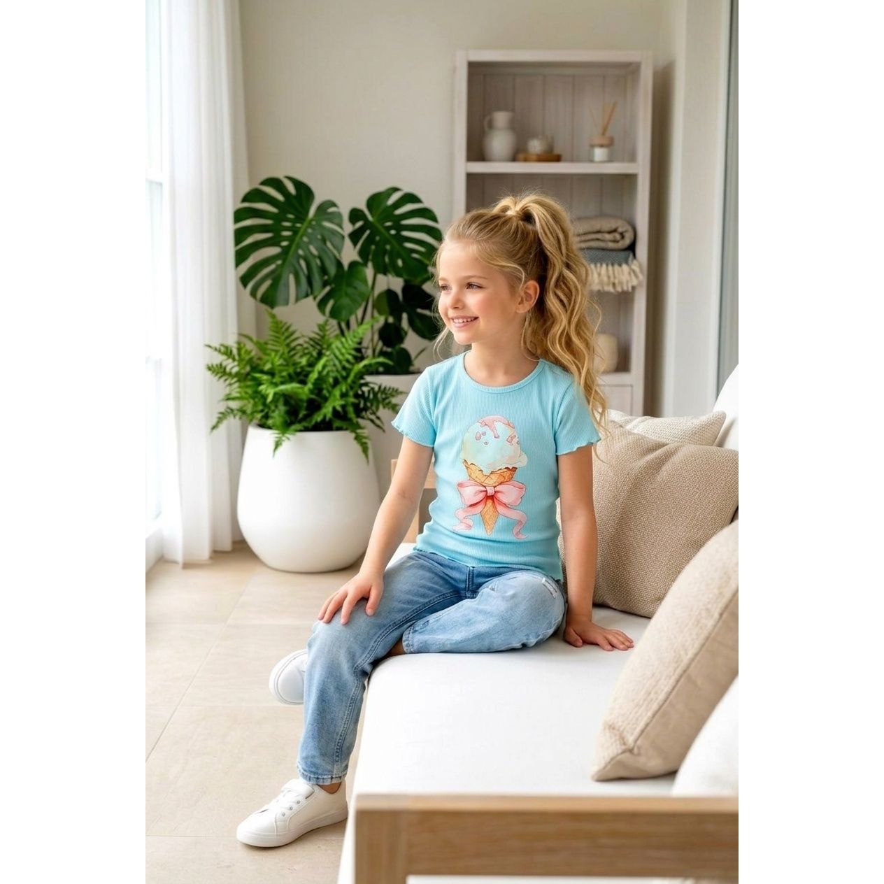 Trendové tričko vrúbkového materiálu s aplikáciou Zmrzliny.